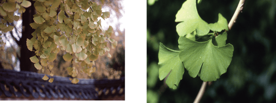 Figure 2: (a)Ginkgo leaves in clusters [17] (b) Fan-shaped leaf of the ginkgo plant