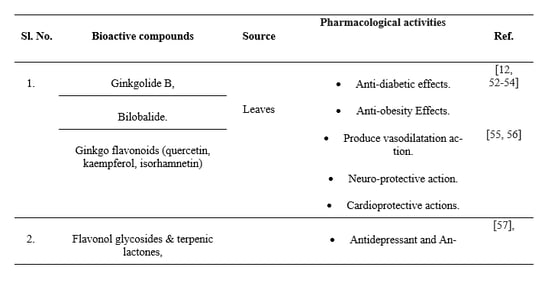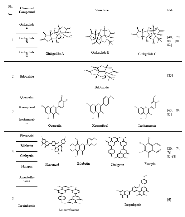 Table 1. The pharmacologically active compounds are obtained from Ginkgo biloba extracts.